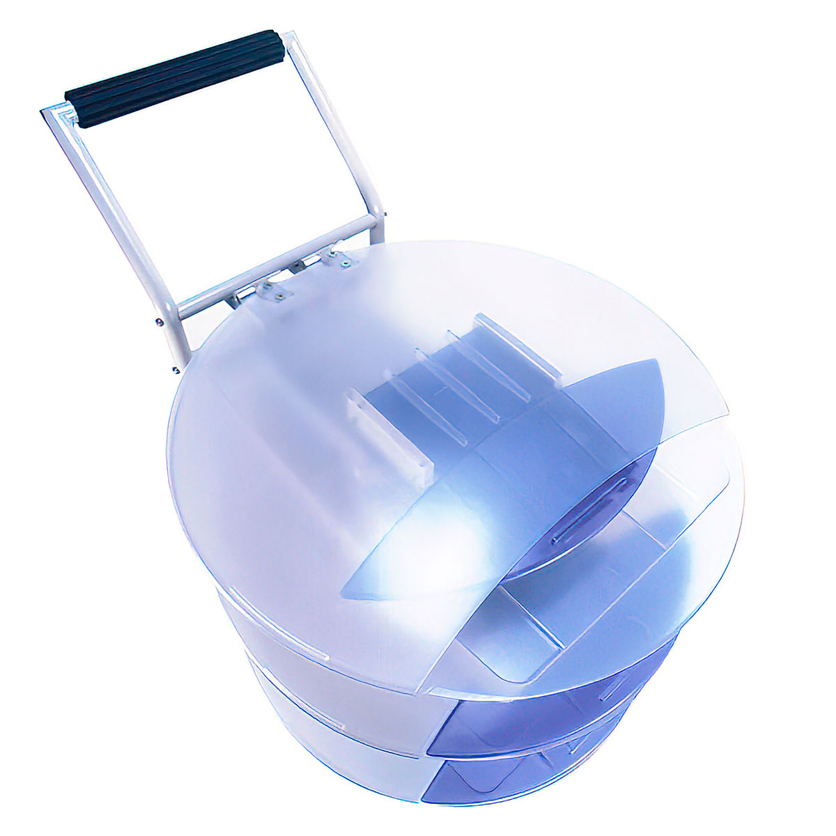 宅配ピザをイメージさせるサイズと形状です。ラフに差し込んだ紙が容器の中で自然に揃う様に下面にこの様なふくらみを設けました。それぞれの容器をキャンティで持ち出す様な形でフレームが支えます。