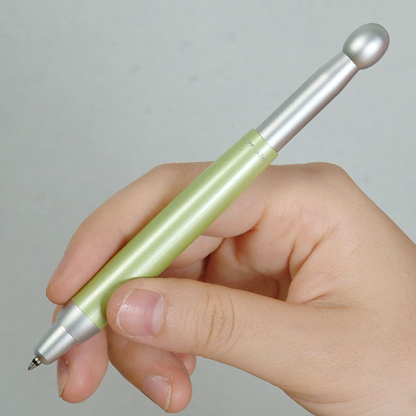 手後ろのヘッドを引っぱったところ。ここを引くと先端からペン先が現れます。